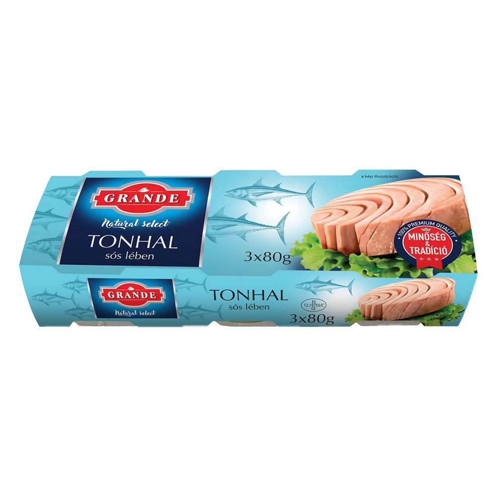 Termék leírás: GRANDE tonhaltörzs sós lében - 3x80g