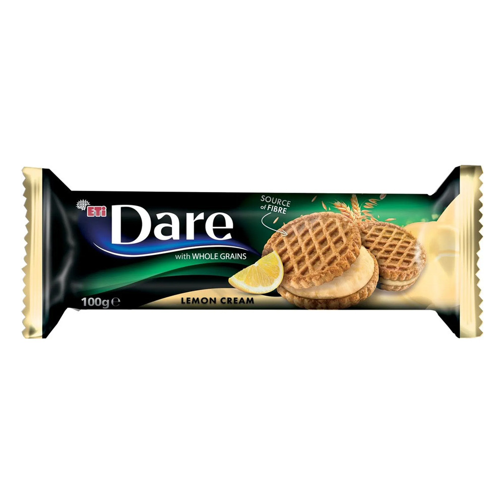 Termék leírás: DARE teljes kiőrlésű gabonás keksz citromos krémmel - 100g