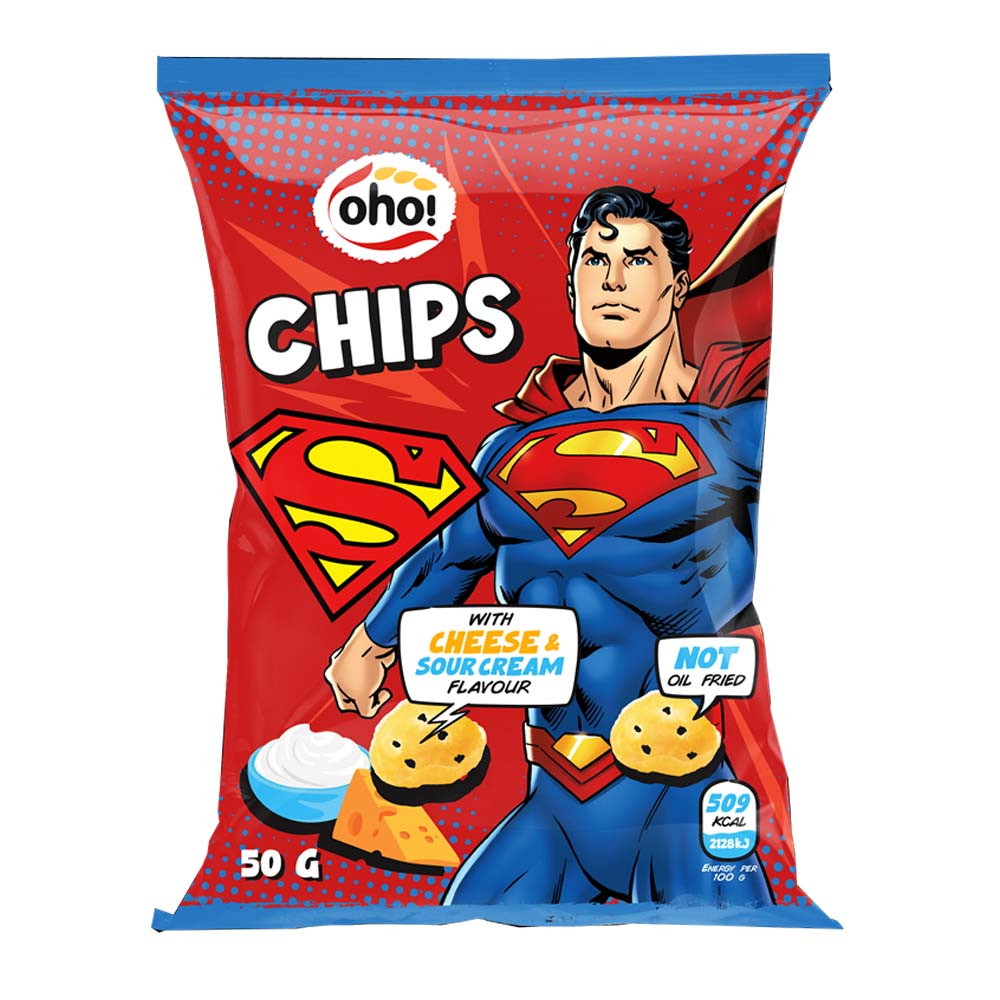 Termék leírás: OHO Superman sajtos-tejfölös ízű kukorica snack - ropogós, nem olajban sült sós csemege.