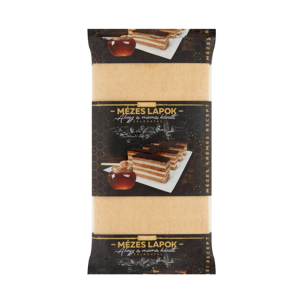 Termék leírás: Tornyos mézes lapok, 6 darabból álló készre sütött mézes tésztalap sütemények készítéséhez.