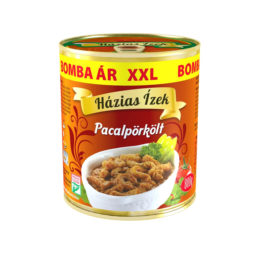 Termék leírás: Házias Ízek pacalpörkölt, házias jellegű készétel konzervben, XXL kiszerelés.