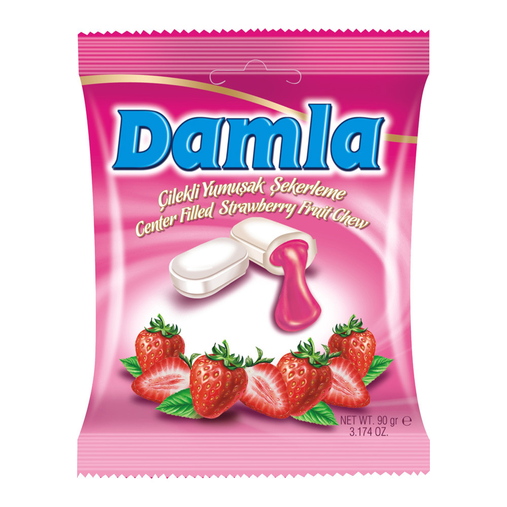 Termék leírás: Damla cukor eper - 90g, eper ízű töltelékkel (10%) töltött, gyümölcsös puha cukorka.