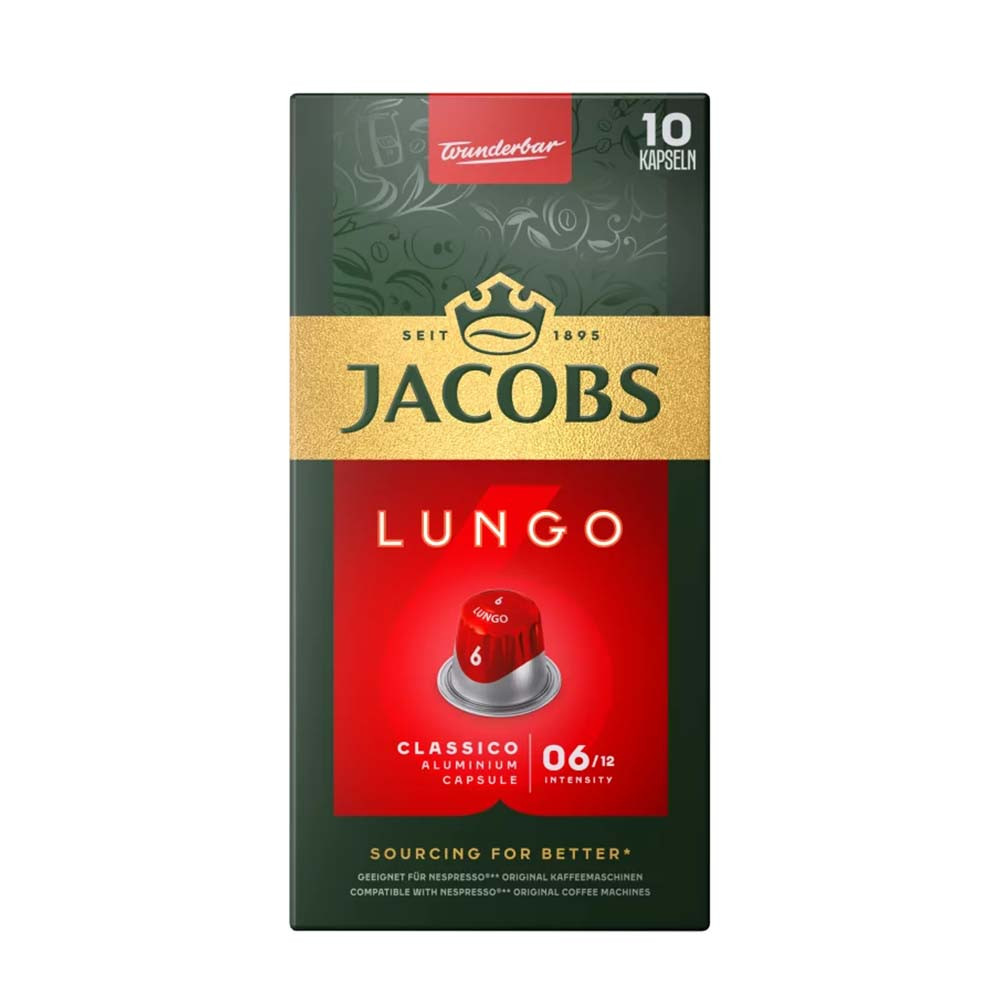 Termék leírás: Jacobs Lungo 6 Classico őrölt-pörkölt kávé kávékapszulában. Lágy és friss ízű kávé, fűszeres jegyekkel, Arabica és Robusta szemekből.