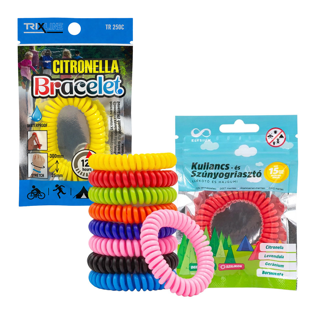 Termék leírás: Elysium szúnyog- és kullancsriasztó szilikon karkötő többféle színben, amely 100%-ban természetes illóolajokkal impregnálva tartja távol a vérszívókat.