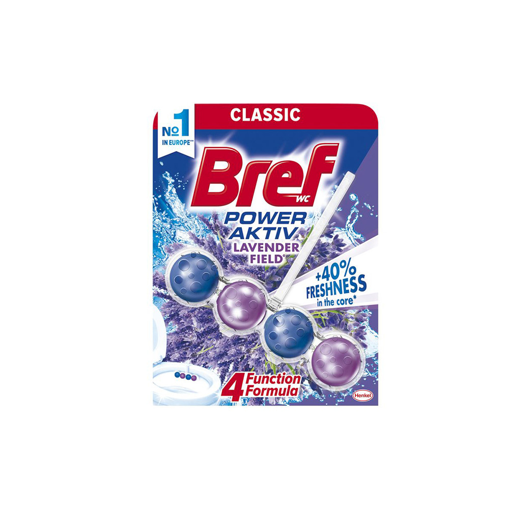 Termék leírás: Bref Power Aktiv Lavender WC-frissítő blokk, 4 funkciós formulával: tisztító hab, vízkő elleni hatás, szennyeződés elleni védelem és extra frissesség.