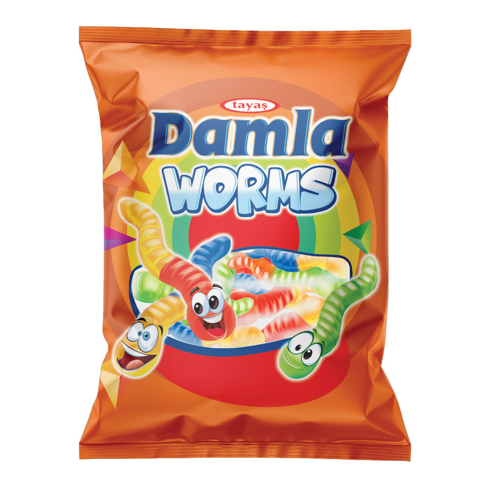 Termék leírás: Damla kukac vegyes gyümölcs ízű gumicukorka - 80g