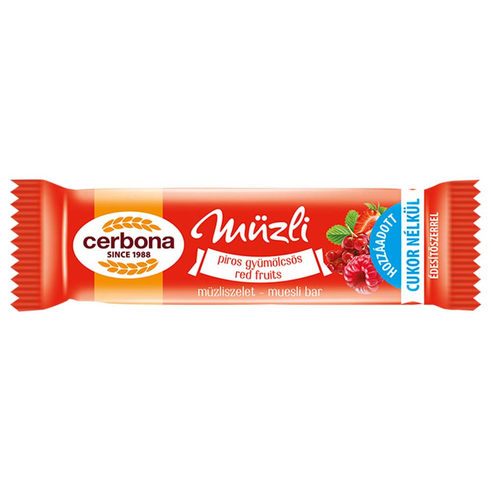 Megnevezés: Cerbona piros gyümölcsös müzliszelet cukor hozzáadása nélkül, édesítőszerrel 20 g