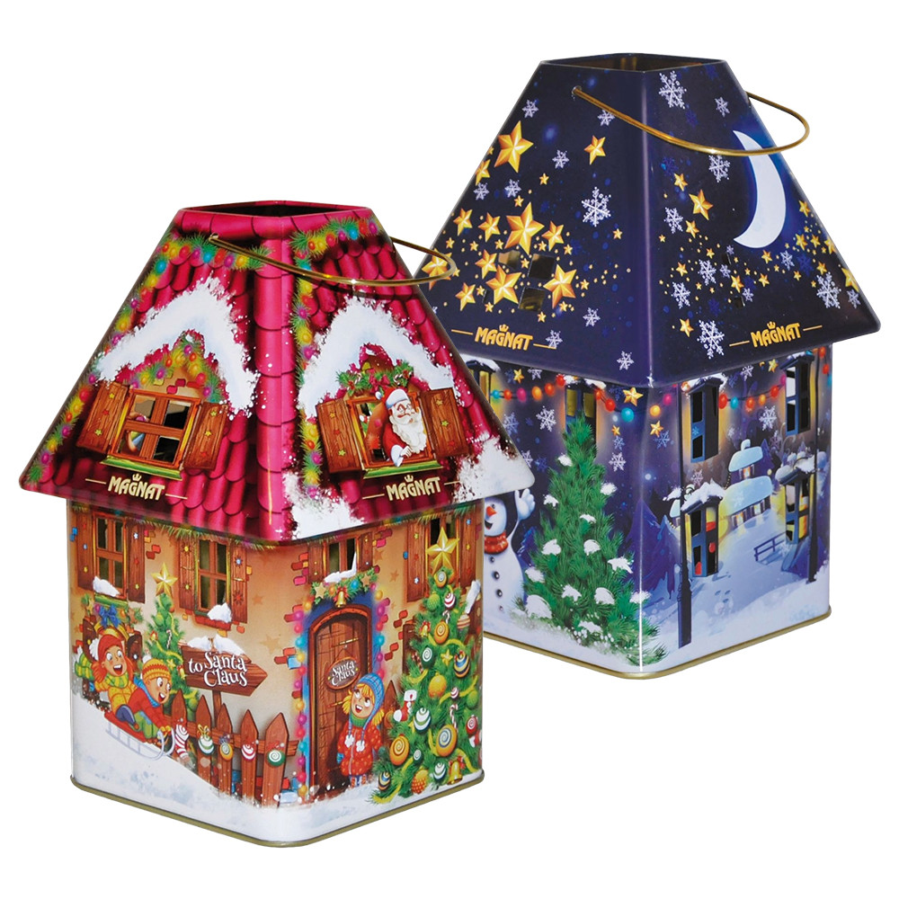Termék leírás: Étcsokoládéval mártott narancsos ízű zselé desszert dekoratív, lámpás alakú fémdobozban.