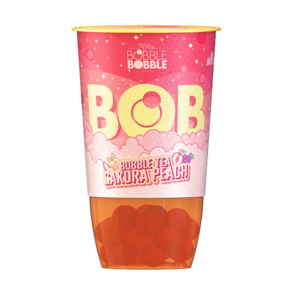 Termék leírás: BOB bubble tea Sakura Peach - ready-to-drink zöld tea alapú üdítőital őszibarack és licsi ízzel, szőlőlét tartalmazó szétpattanó golyócskákkal.