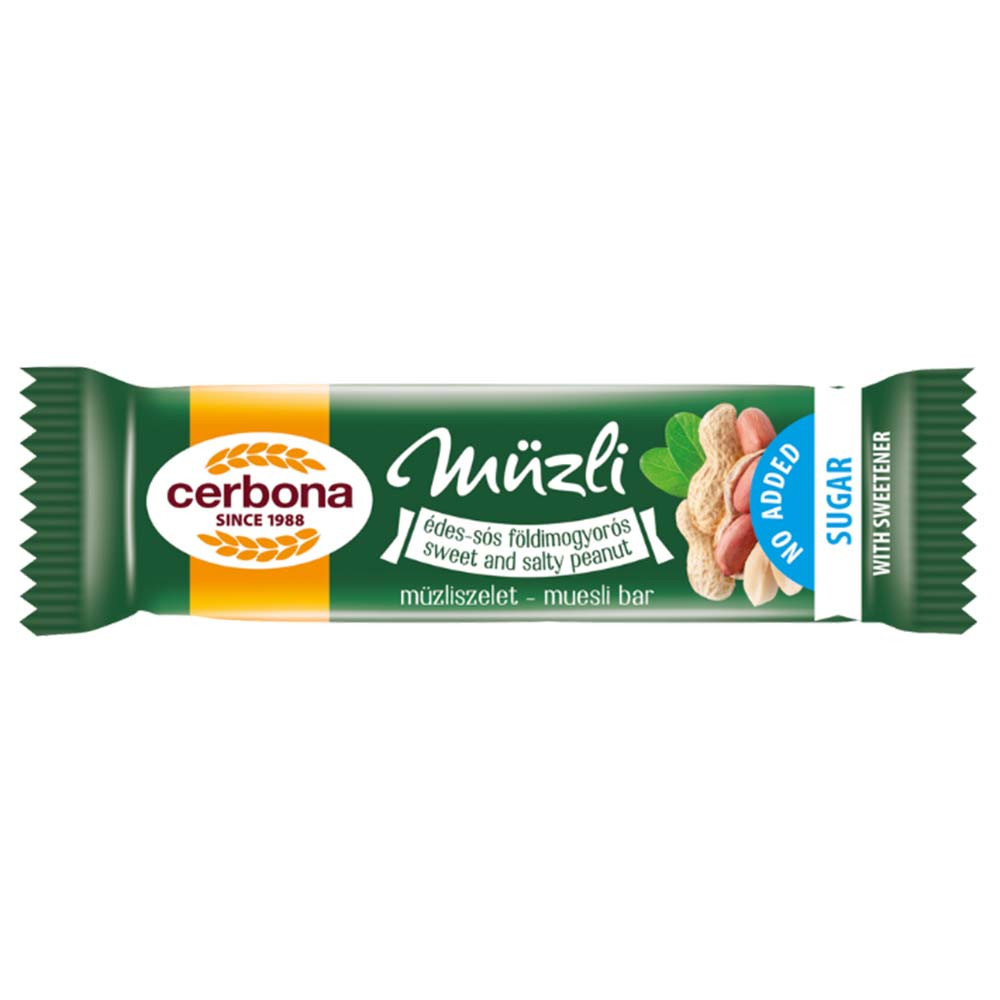 Termék leírás: Édes-sós földimogyorós müzliszelet, hozzáadott cukor nélkül, édesítőszerrel.