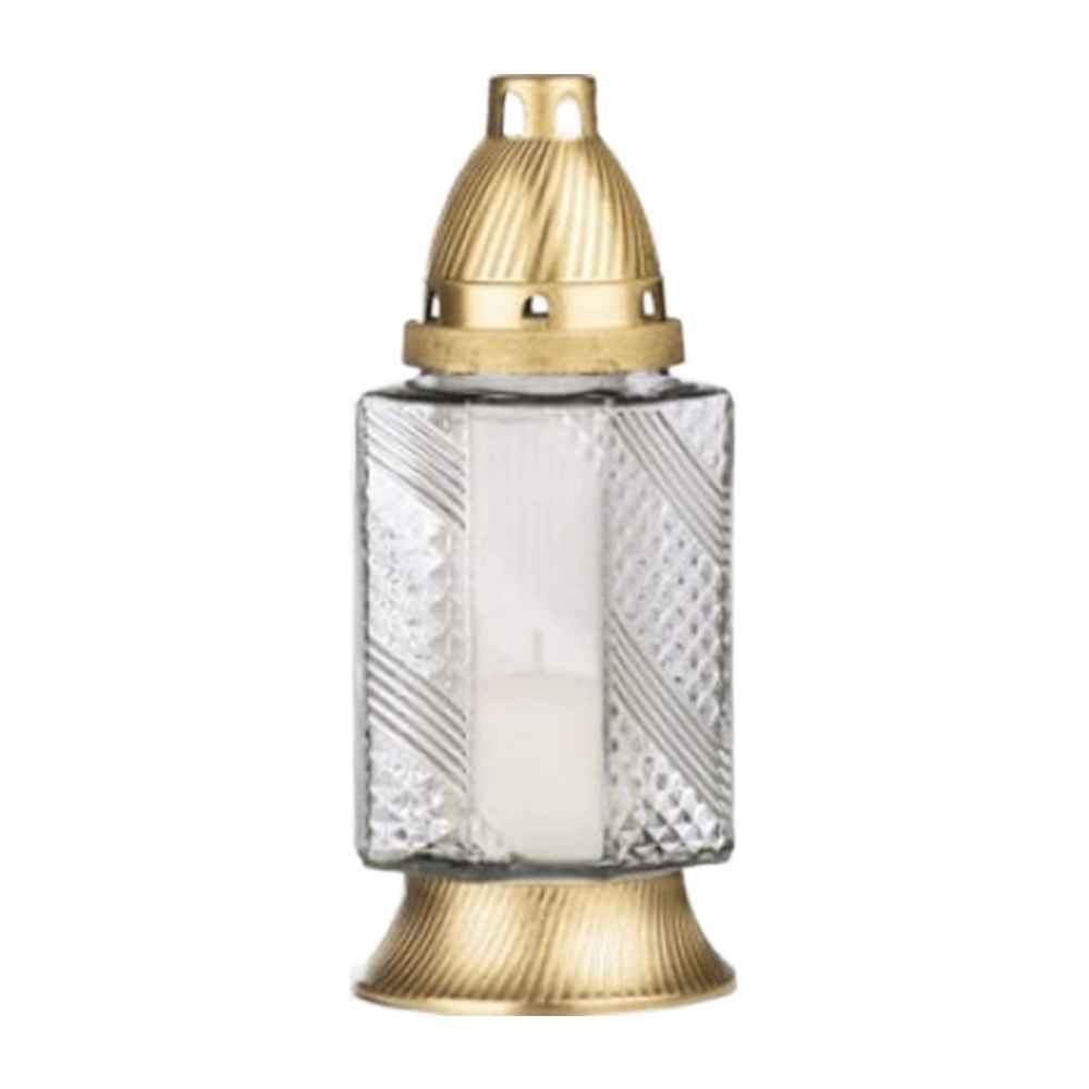Termék leírás: Üvegmécses műanyag fedéllel és talppal, rácsos mintázattal, 250 mm magassággal.