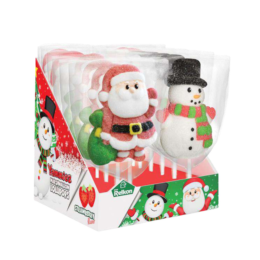Termék leírás: Relkon karácsonyi pillecukor nyalóka, Télapó vagy hóember figurás kivitelben, eper ízesítéssel.