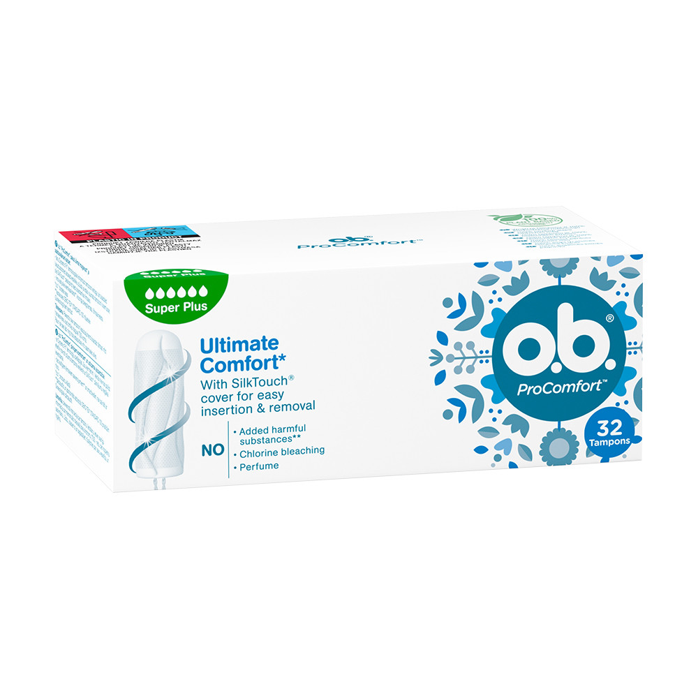 Termék leírás: o.b. ProComfort Super Plus tampon Dynamic Fit technológiával és SilkTouch borítással a maximális kényelemért és megbízható védelemért. Kifejezetten erős vérzéshez ajánlott.