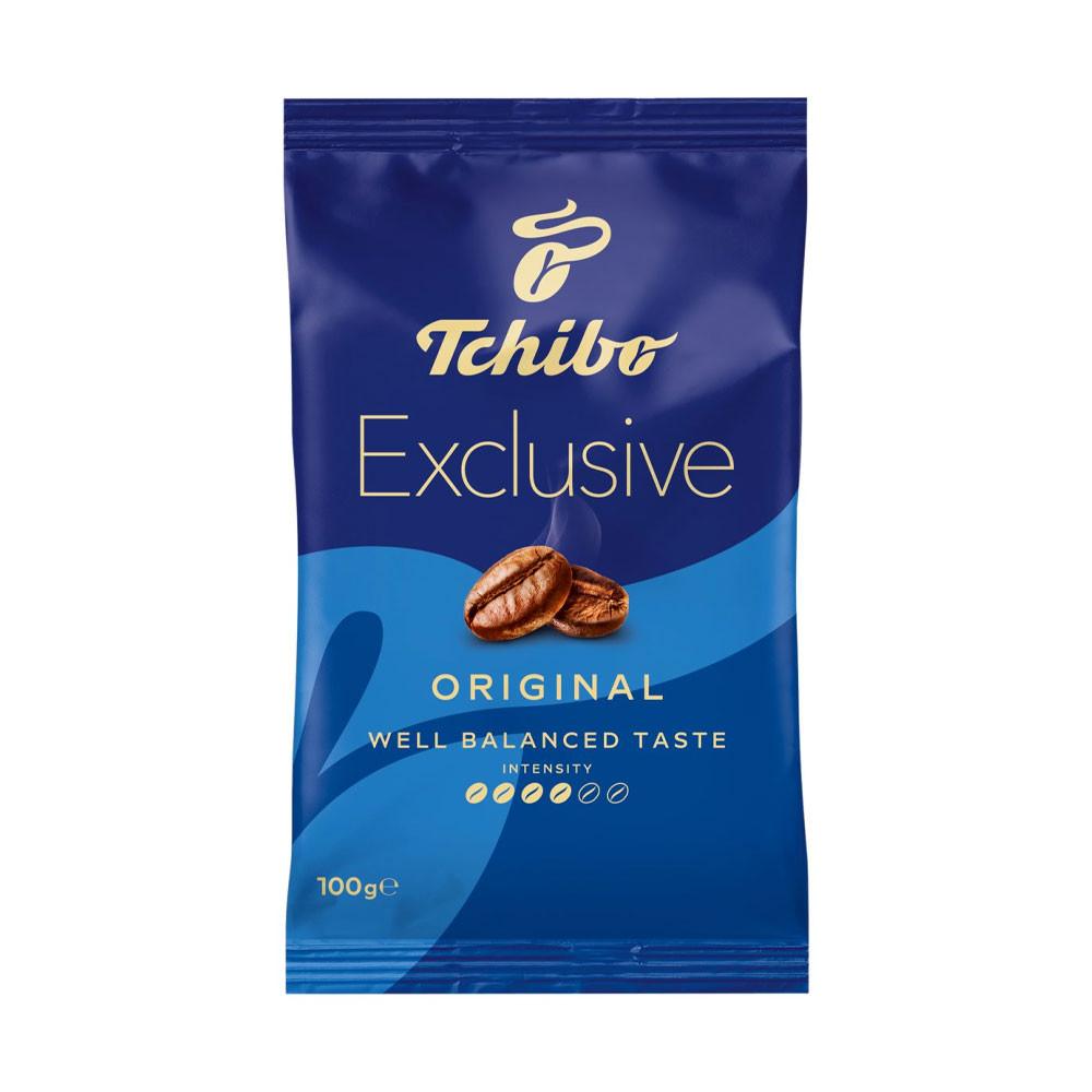 Termék leírás: Tchibo Exclusive Original őrölt, pörkölt kávé, 100g-os vákuumcsomagolásban. Kifinomult aroma és harmonikus ízvilág jellemzi, közepes pörköléssel.