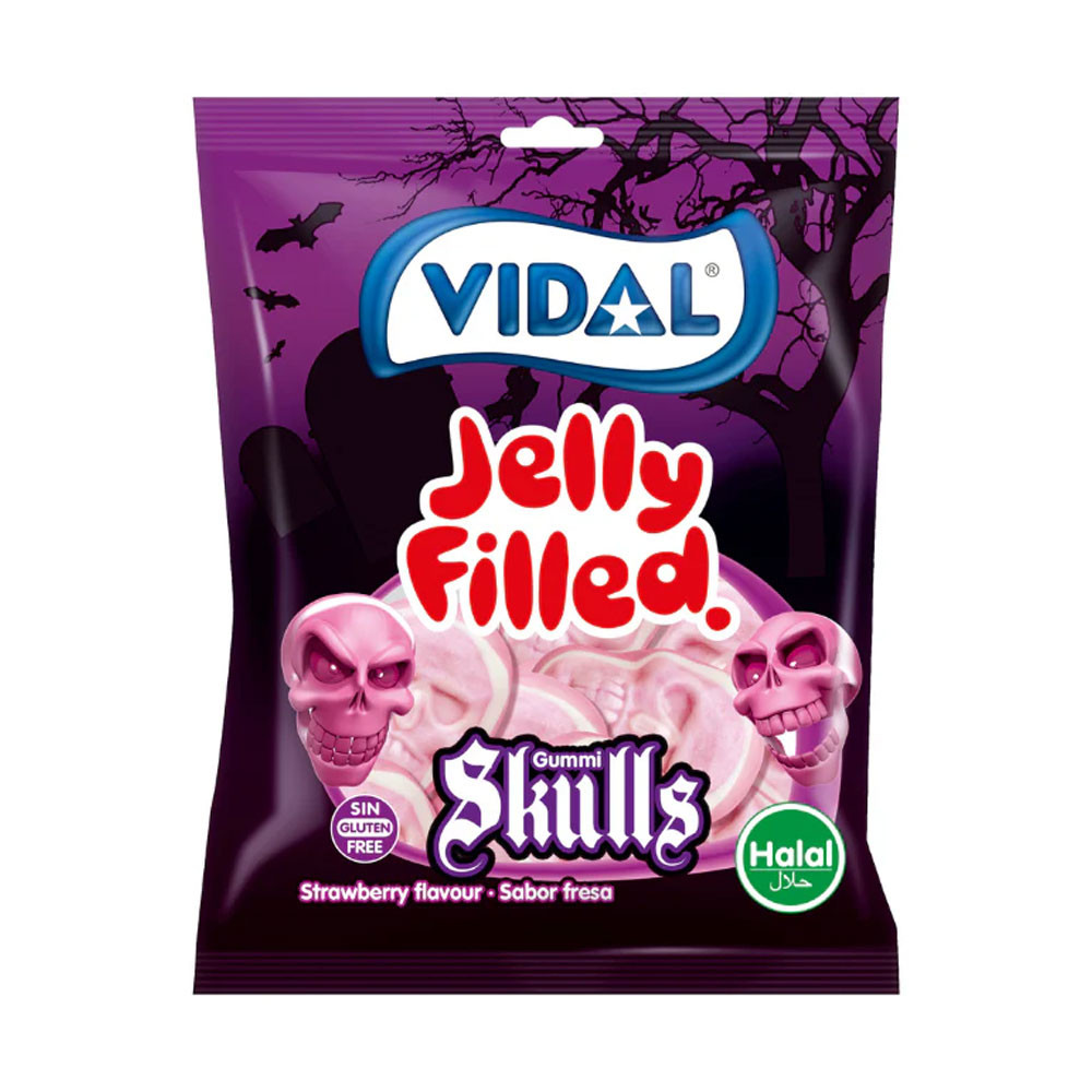 Termék leírás: Vidal Jelly Filled Skulls - epres ízű, koponya alakú gumicukor folyékony gyümölcsízű töltelékkel.