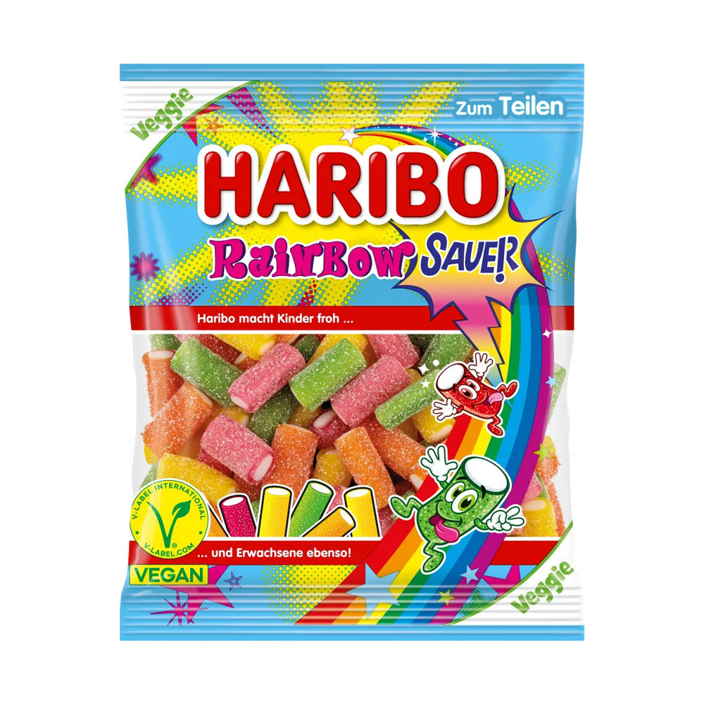 Termék leírás: Haribo Rainbow Fizz gyümölcsízű, savanyított gumicukor