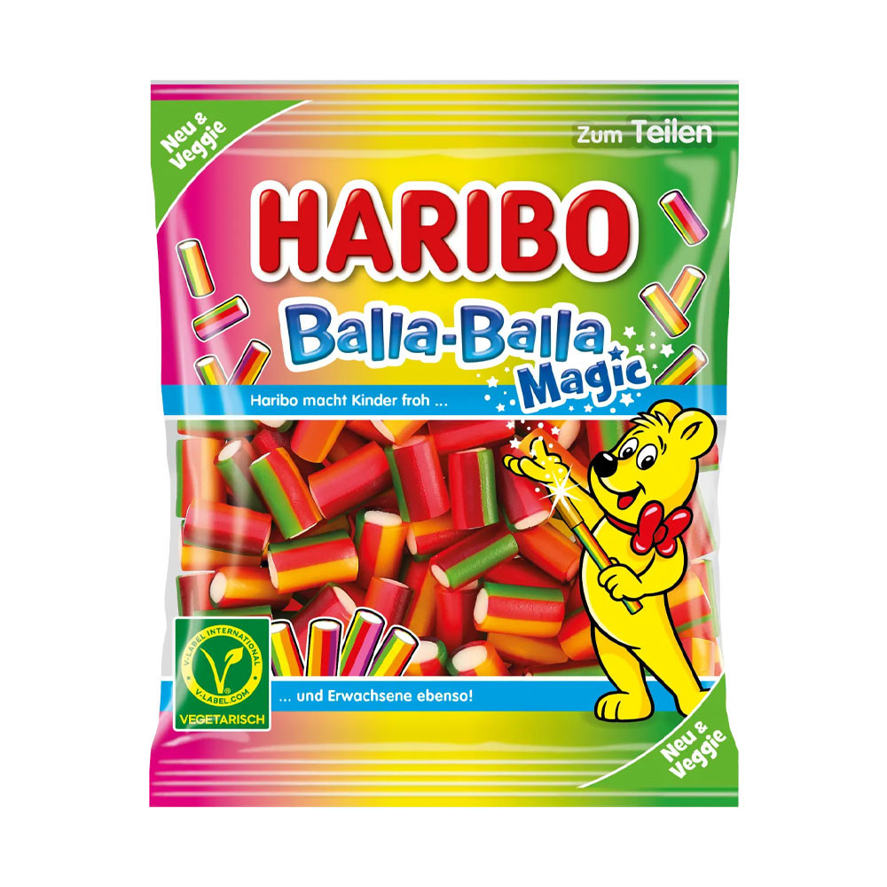 Termék leírás: Haribo Balla-Balla Magic – gyümölcsízű gumicukor és puha cukorka keveréke, egzotikus mangó- és passiógyümölcs ízvilággal, 160g-os kiszerelésben. Vegetáriánusok számára is alkalmas.