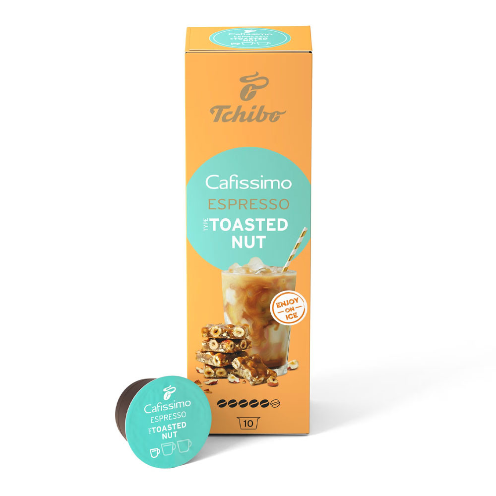 Termék leírás: Tchibo Cafissimo Espresso Toasted Nut kávékapszula, 10 db-os kiszerelés (70g). Limitált kiadású pörkölt, őrölt kávé mogyoró és sütemény aromával.