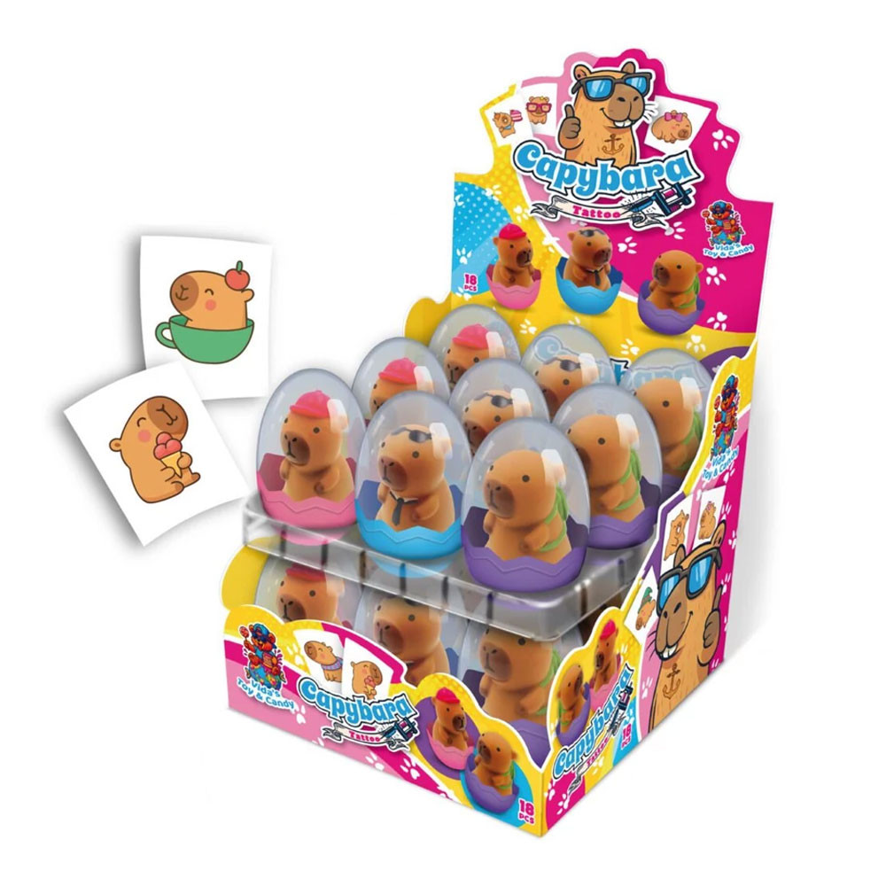 Termék leírás: Vid Capybara + Tattoo 5g - Capybara figurás préselt cukorka ideiglenes tetoválással.